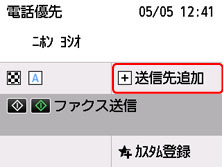 B:1件目の送信先を登録している送信先から選んだ場合に表示されます。ファクス/電話番号を入力して、送信先を追加できます。