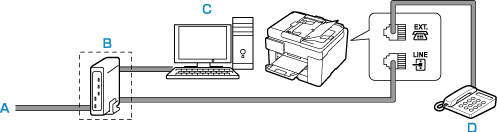 - C: Ar interneta tālruni saderīgs platjoslas maršrutētājs