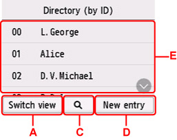 • C: Atlasiet, lai parādītu reģistrētā saņēmēja ID numura atlasīšanas ekrānu. Varat meklēt reģistrēto saņēmēja pēc ID numura.