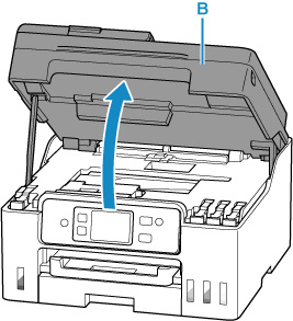 2. Atveriet skenēšanas bloku/vāku (B).