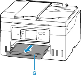 7. Izvelciet papīra izvades uztvērēju (G).