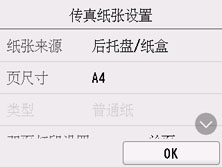 打印机将接收到的传真打印到预先装入打印机的纸张上。 可以使用操作面板更改打印传真的纸张设置。 确保各项设置均适合于装入的纸张。