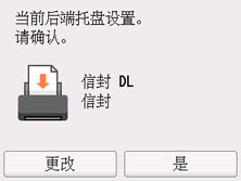装入信封后,触摸屏上会出现后端托盘的纸张设置确认屏幕。