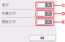 D: 将双面打印已发送/接收的传真、报告或列表选择为默认设置。