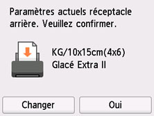 Si le format de papier et le type de support sur l'écran tactile correspondent au format et au type de papier chargé dans le réceptacle arrière, sélectionnez Oui.