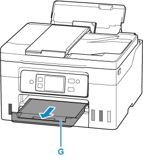 Izvlecite izhodni pladenj za papir (G).