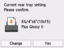 Če se velikost strani in vrsta medija na zaslonu na dotik ujemata z velikostjo in vrsto papirja, naloženega v zadnjem pladnju, izberite Da (Yes).