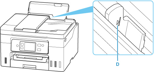 • Ovojnic ne nalagajte nad oznako meje za nalaganje papirja (D).
