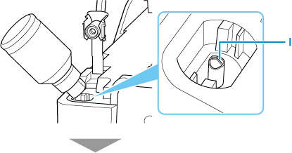 Konico stekleničke s črnilom poravnajte z odprtino za dovajanje črnilnega vložka (I) in stekleničko počasi obrnite na glavo ter jo potisnite v odprtino za dovajanje.