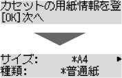 用紙を交換した後、セットした用紙の用紙情報を登録する画面が表示されます。セットした用紙に合わせて登録してください。