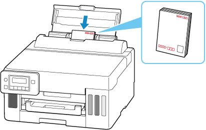 長尺用紙は、用紙サポートは引き出さずセットしてください。また、用紙の重さによっては先端が浮き上がり、印刷がずれることがあります。後トレイからはみ出している部分を保持するなど、用紙の先端が浮き上がらないようにしてください。