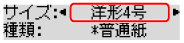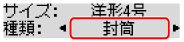 封筒をセットすると、液晶モニターに後トレイの用紙情報の登録画面が表示されます。