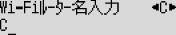 操作パネルのセットアップボタンを押すたびに、文字の入力モードが、英小文字→英大文字→数字→記号の順に切り替わり、先頭の入力可能な文字が表示されます。
