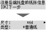 更换纸张后,将显示纸张信息注册屏幕。 根据装入的纸张,注册纸张信息。
