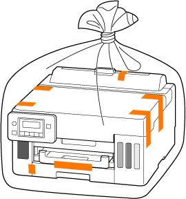 • 運輸印表機時,請使用塑膠袋包裝印表機,以防墨水漏出。