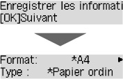 L'écran d'enregistrement des informations sur le papier de la cassette s'affiche après le remplacement du papier. Enregistrez les informations sur le papier en fonction du papier que vous avez chargé.