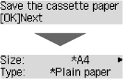 Після заміни паперу з’являється екран реєстрації відомостей про папір. Зареєструйте відомості про папір відповідно до завантаженого паперу.