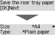 Відобразиться екран, на якому можна зареєструвати відомості про папір у задньому лотку.