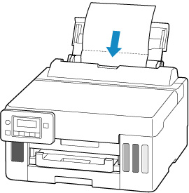 Αφού τοποθετήσετε χαρτί στην πίσω θήκη, η οθόνη καταχώρισης πληροφοριών χαρτιού για την πίσω θήκη εμφανίζεται στην οθόνη LCD. Επιλέξτε A4 ή Letter στην επιλογή Μέγ.: (Size:) και Απλό χαρτί (Plain paper) στην επιλογή Τύπος: (Type:).