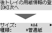 後トレイにセットした用紙に合わせて、用紙サイズと用紙種類を登録してください。