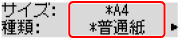 用紙をセットすると、液晶モニターに後トレイの用紙情報の登録画面が表示されます。[サイズ:]で[A4]または[レター]を選び、[種類:]で[普通紙]を選びます。