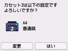 表示された用紙のサイズが、カセットにセットした用紙と同じであれば、[はい]を選びます。