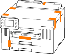 Prindeți cu bandă adezivă toate capacele imprimantei, pentru a le împiedica să se deschidă.