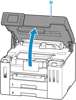 Important- Deschideţi cu grijă capacul rezervorului al rezervorului de cerneală. Cerneala din interiorul capacului rezervorului se poate împrăştia atunci când îl deschideţi.