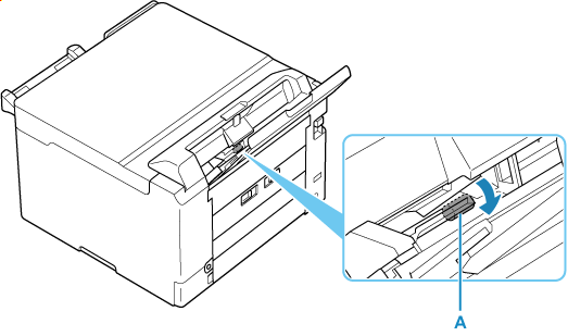 În timp ce rotiți rola de alimentare cu hârtie (A) situată în interiorul tăvii din spate mai mult de două ture complete, ștergeți-le cu o cârpă umedă, bine stoarsă.