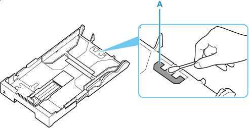 Dacă tamponul dintr-o casetă este murdar cu praf de hârtie sau impurităţi, este posibil să fie eliminate două sau mai multe coli de hârtie. Urmaţi procedura de mai jos pentru a curăţa tamponul dintr-o casetă.