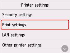 Setări dispozitiv (Printer settings).Se afișează ecranul Setări dispozitiv (Printer settings).
