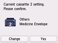 7. Dacă dimensiunea de pagină şi tipul de suport de pe ecranul senzitiv se potrivesc cu dimensiunea şi tipul plicurilor pentru medicamente încărcate în casetă, selectaţi Da (Yes).