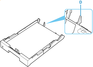 Dacă stiva de hârtie este în contact cu proeminenţa (D), este posibil ca hârtia să nu fie alimentată în mod corespunzător.