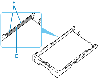 • Menţineţi înălţimea stivei de hârtie sub proeminenţele (F) ale ghidajelor pentru hârtie.