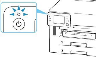 拔除電源線時,按電源(ON)按鈕,然後確認電源(ON)指示燈熄滅。 如果在電源(ON)指示燈亮起或閃爍時拔除電源線,將有可能造成列印頭乾涸或堵塞,並且列印品質可能會降低。
