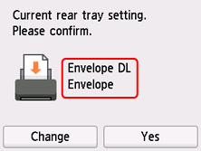 Εάν το μέγεθος σελίδας και ο τύπος μέσου που εμφανίζεται στην οθόνη αφής αντιστοιχεί στο μέγεθος και τον τύπο του φακέλου που έχετε τοποθετήσει στην πίσω θήκη, επιλέξτε Ναι (Yes).