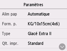 Sélectionnez Paramètres pour afficher l'écran suivant.