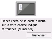 Placez l'original sur le plateau en suivant les instructions à l'écran, puis sélectionnez Numériser. Lorsque le recto a été numérisé, l'écran ci-dessous apparaît.