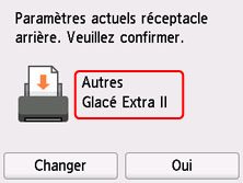 Si le format de papier et le type de support sur l'écran tactile correspondent au format et au type de papier chargé dans le réceptacle arrière, sélectionnez Oui.