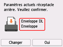 Si le format de papier et le type de support indiqués sur l'écran tactile correspondent au format et au type des enveloppes chargées dans le réceptacle arrière, sélectionnez Oui.