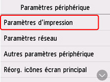 Paramètres périphérique.L'écran Paramètres périphérique s'affiche.