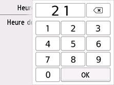 L'écran permettant de spécifier l'heure de début/de fin s'affiche.