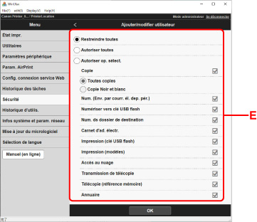 4. Définissez l'opération autorisée pour chaque utilisateur, puis cliquez sur OK.