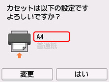 表示された用紙のサイズが、カセットにセットした用紙と同じであれば、[はい]を選びます。