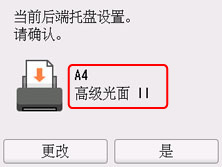 如果触摸屏上的页尺寸和介质类型与后端托盘中装入的纸张尺寸和类型相匹配,请选择是。