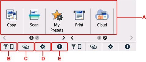 (NEW) sẽ xuất hiện khi có thông báo cập nhật hoặc thông tin từ PIXMA/MAXIFY Cloud Link. - E: Gợi ý