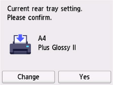 وبخلاف ذلك، حدد Change لتغيير الإعدادات وفقًا لحجم الورق الذي تم تحميله ونوعه.