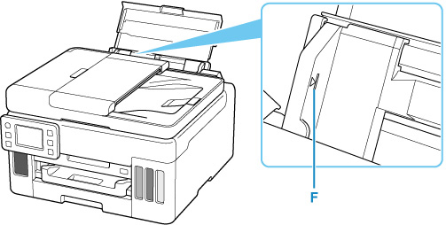 7. اسحب درج إخراج الورق (‏G)‏ للخارج.