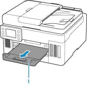 اسحب درج إخراج الورق (I) للخارج.