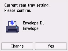 بعد تحميل الأظرف، يتم عرض شاشة تأكيد إعدادات الورق الموجود في الدرج الخلفي على الشاشة باللمس.